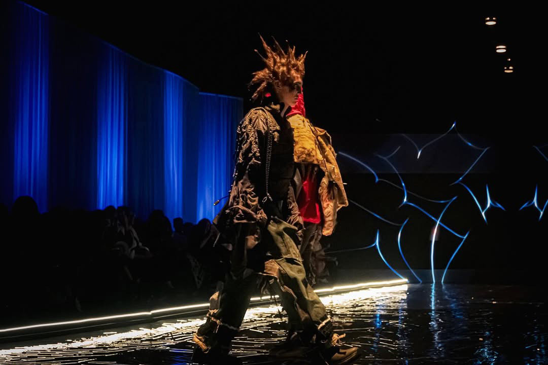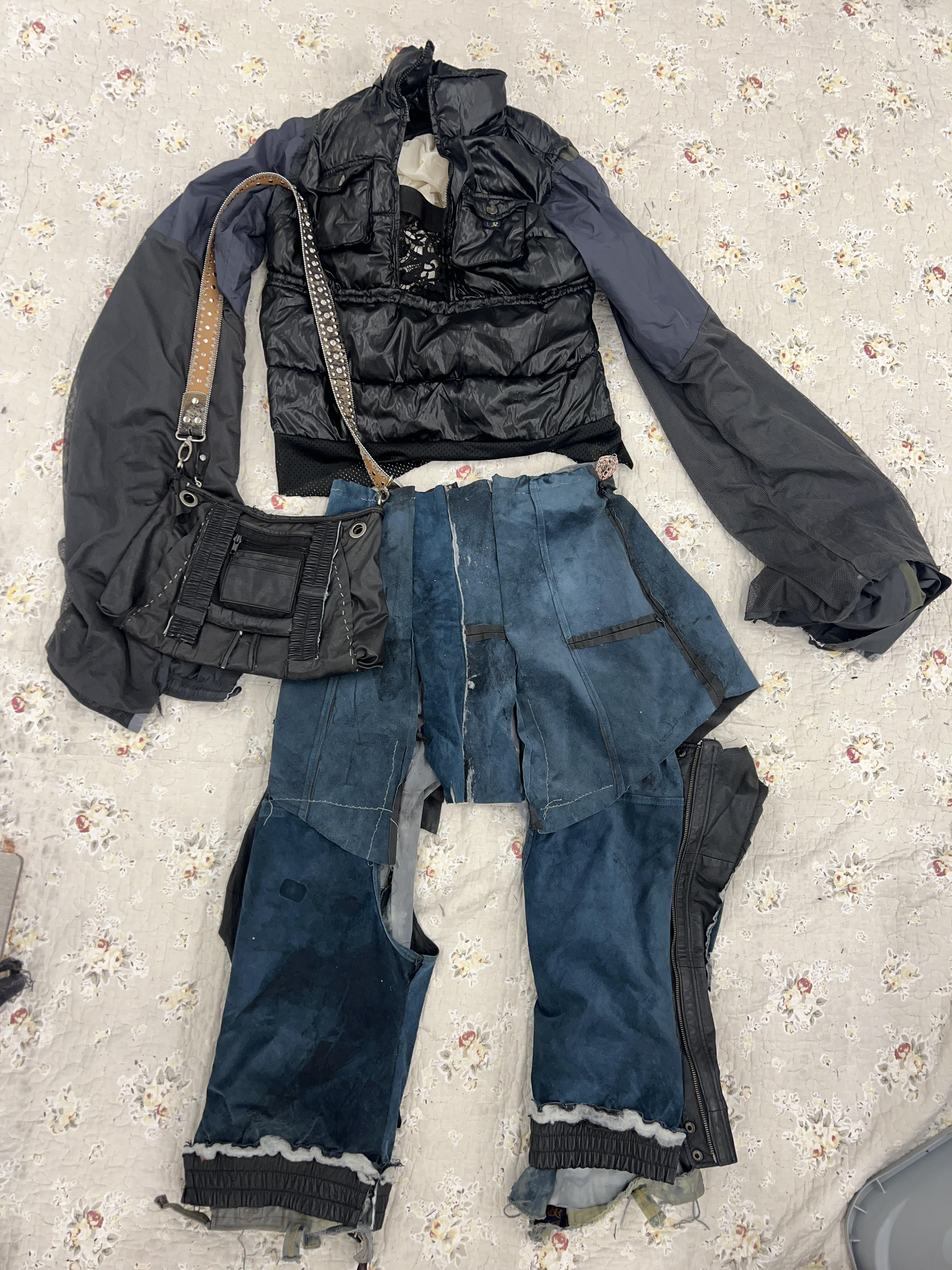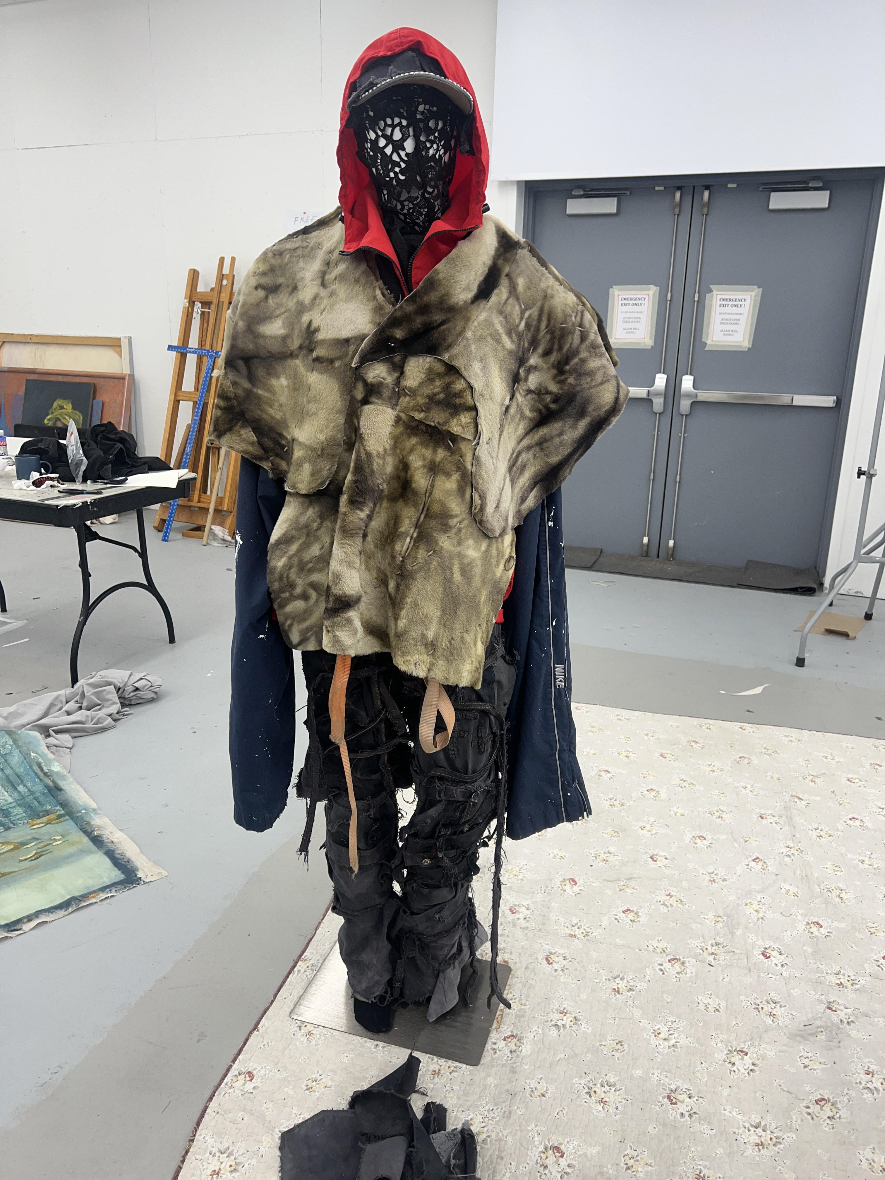 Around the middle of his senior year (2025), Dunsworth began working more extensively with clothing, using the opportunity presented by Ringling College’s Cross-Major Genesis fashion show to push into a new medium. Staying true to found objects, he limited his materials to his existing wardrobe, disassembling most of his clothes and reassembling them into entirely new articles. The process was intuitive rather than preplanned, driven more by experimentation and reorganization than by a fixed vision. Through repeated recombination, the work evolved organically until it arrived at a form that felt resolved.
